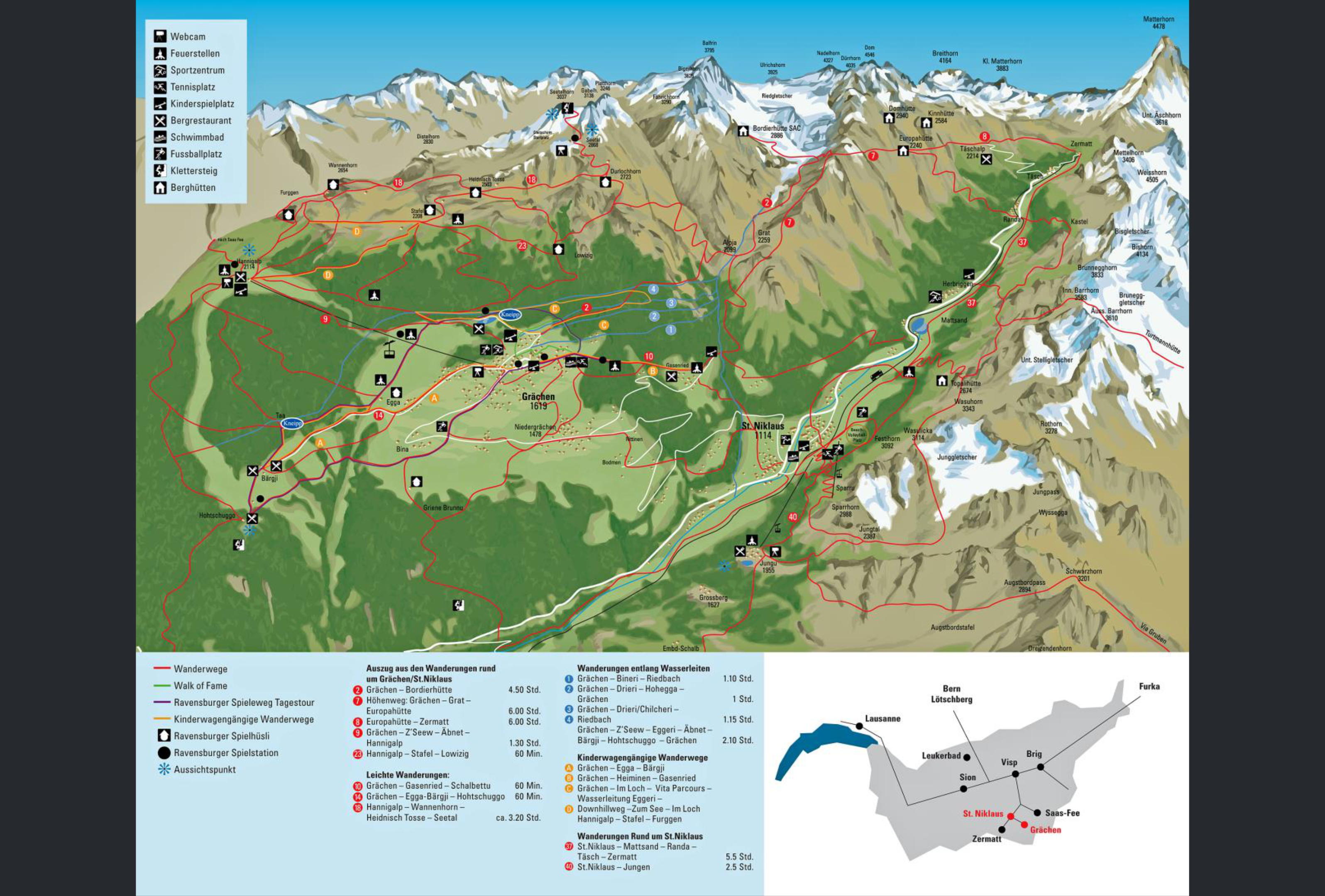 Mit dem Gütesiegel „Familien willkommen“ ausgezeichnet, werden in Grächen auch alle Wünsche der Eltern erfüllt: Kindermietmaterial und Kinderbetreuung gehören zum Angebot wie Kidshotel, Spielplätze und Schwimmbad.